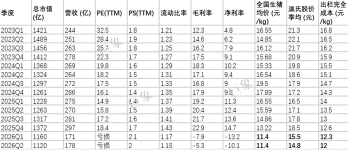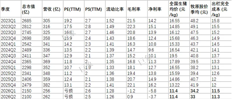 资料来源:公开信息整理、巨象商品逻辑 当然实操过程中,企业去锁定多少比例的风险,对应的出栏或者采购时间点应该是什么合约,合约出现基差风险,谁需要去做猪期货,谁需要去做饲料等,都需要进一步去研究。具体的操作链接和方法,其实可以参考上一篇文章,篇幅有限,不能一言而概之,仅供参考。巨象说:生猪近月探明底部,价差结构已透露变盘信号,未来路在何方? 那么对于猪产业参与者,或者期货期权交易者,留足现金的空间,配置专业的工具,减少价格风险敞口,熬到猪的上行周期到来。 猪企方面,头部上市企业的财务指标相对比较健康,但头部企业在最近一个猪周期加快的市场整合能力,这个指标并不是每个季度都能更新的,在养猪亏损周期,他们的市场份额也快速扩大。2015年养猪企业头部CR20的份额6.5%,2025年已经到达37%,2026年预估会超过41%。行业的整合非常快,但份额大么?似乎也还行,2025年养鸡的CR20大约在53%。那么接下来的猪板块,是否进入一个强者恒强阶段?权益投资者还要注意,头部猪企均为重资产高市值企业,和大盘相关性较大。大盘的大周期给出机会,再去布局猪板块。从估值角度来看,当前行业整体估值处于合理区间,具备长期布局价值。 牧原股份(002714)