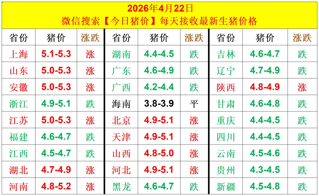 今日猪价|猪价2026.4.22(仅作参考)