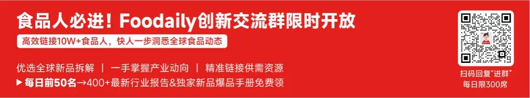 更多行业前沿资讯和优质供需资源对接,扫码添加「食品创新官」Cherry即可进群。