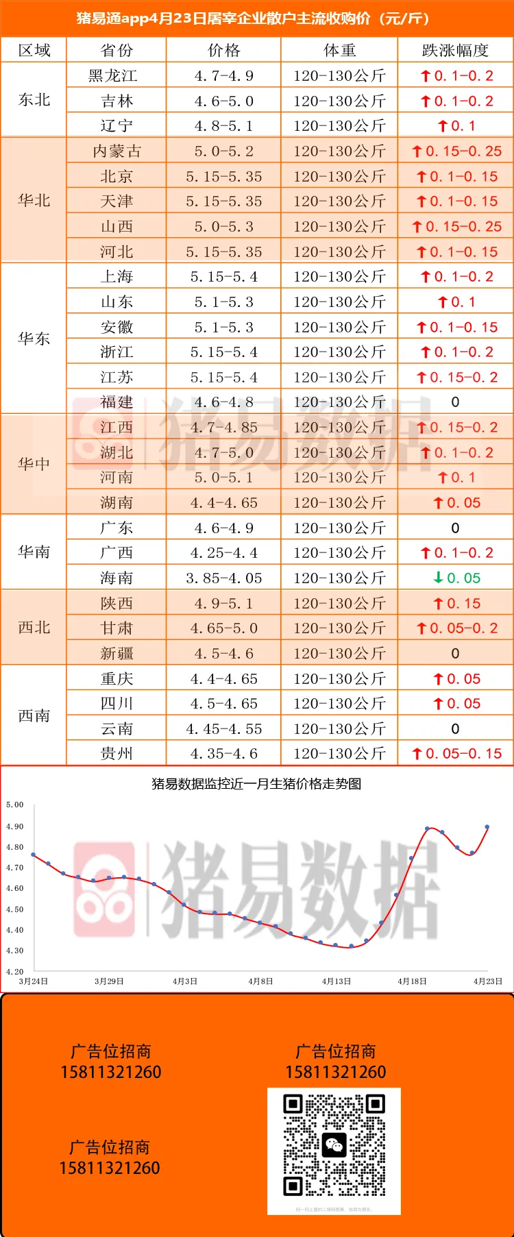 各大区域猪价表现: