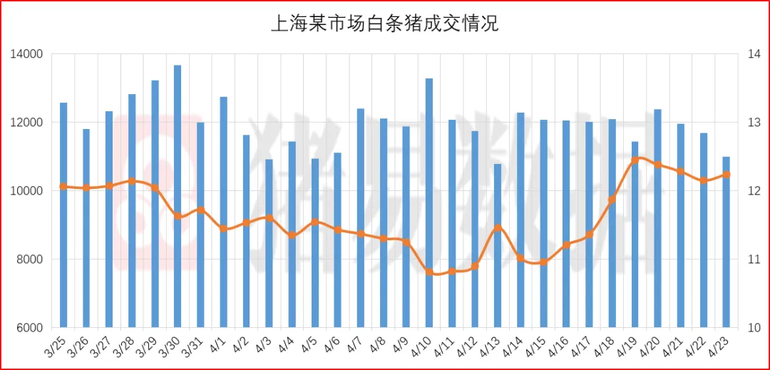 从今日北京、上海消费城市批发市场白条价格走势来看,北京、上海批发市场白条开磅价格呈现稳中伴涨,北京大部分市场开磅价格维持稳定,市场走货速度表现一般;上海市场价格呈现上涨态势,部分市场成交价参考11.71-12.24元/公斤,到货量表现有所减少,市场交易情况表现一般,市场成交均价表现一般偏好。