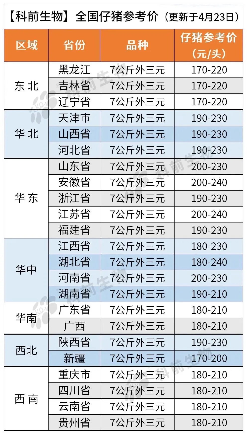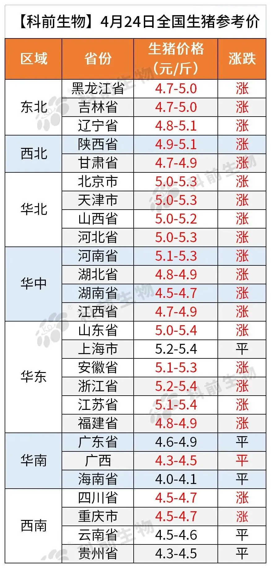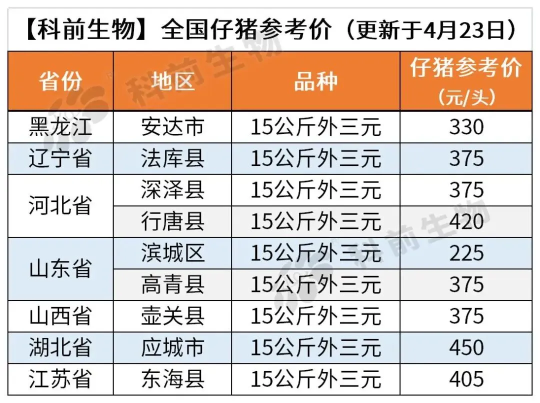 【科前生物】4月24日全国猪价参考