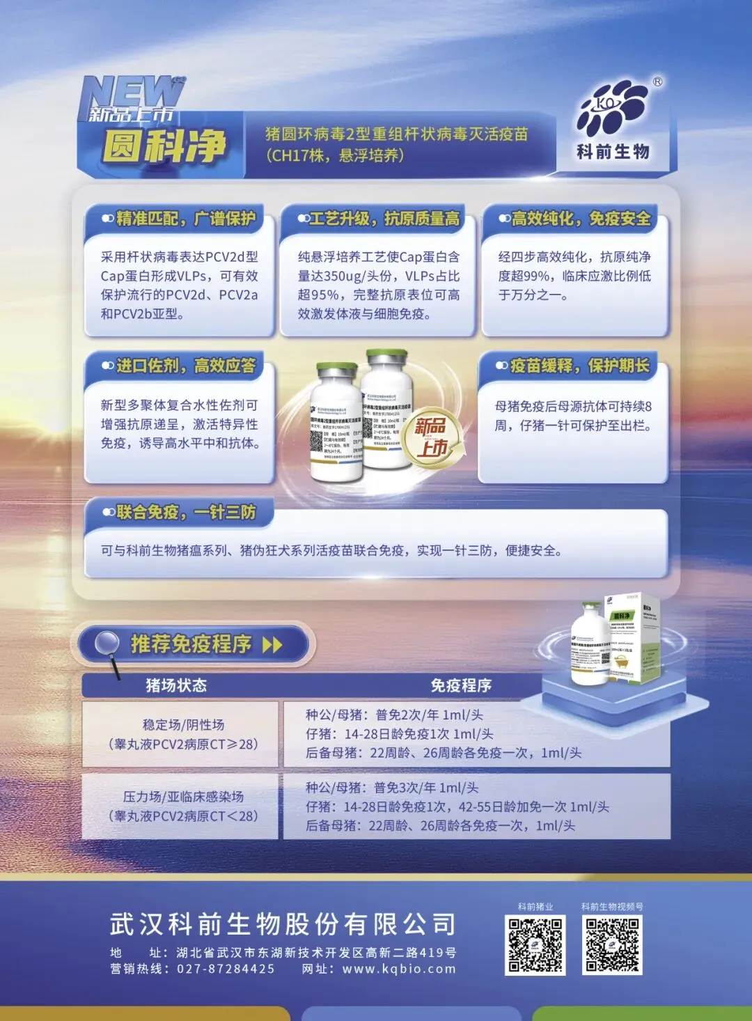 武汉科前生物股份有限公司成立于2001年,专注于兽用生物制品研发、生产、销售及动物防疫技术服务,是国家发改委首批授予的“国家高新技术产业化示范工程”重点高新技术企业,是上海证券交易所科创板上市企业(股票代码:688526)。