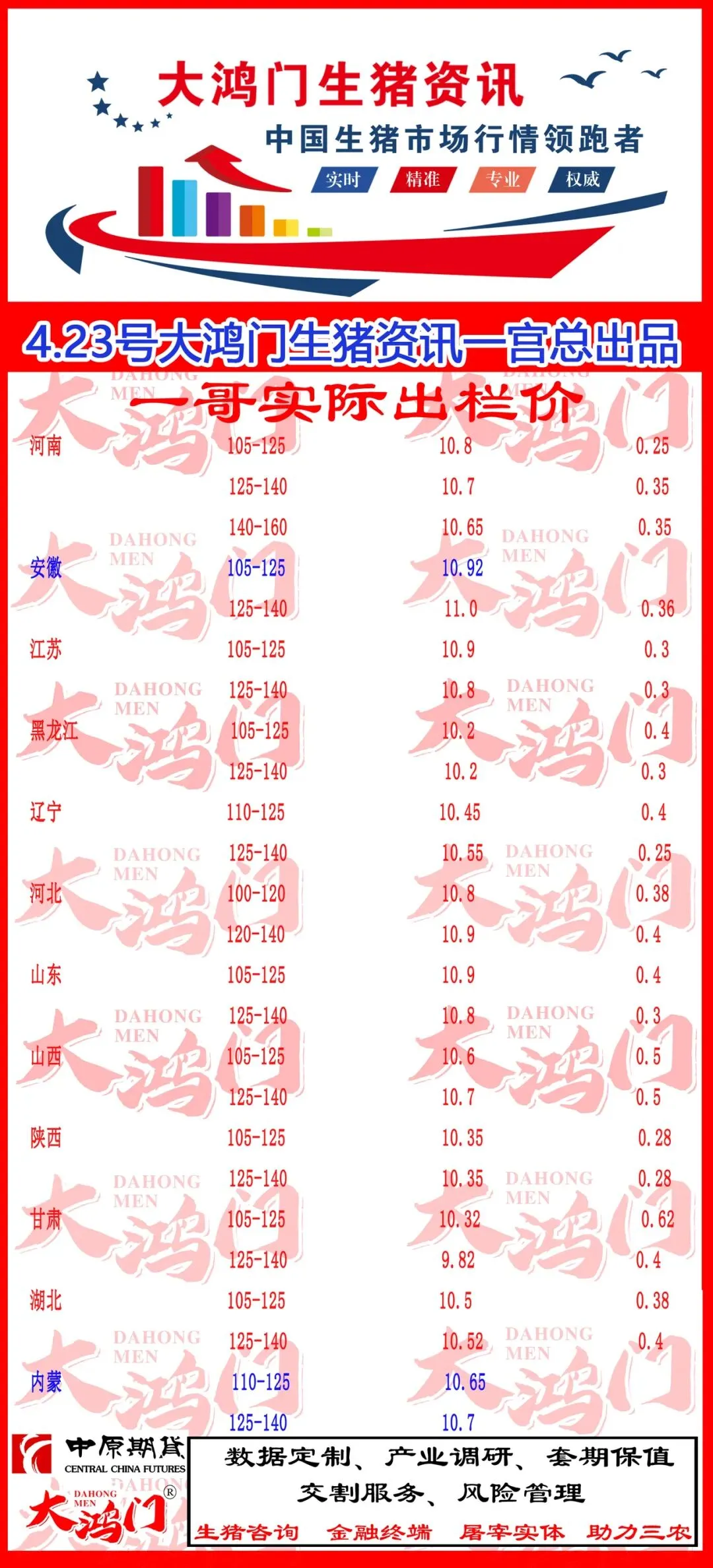 2026年4月24日大鸿门猪价:南北通涨!
