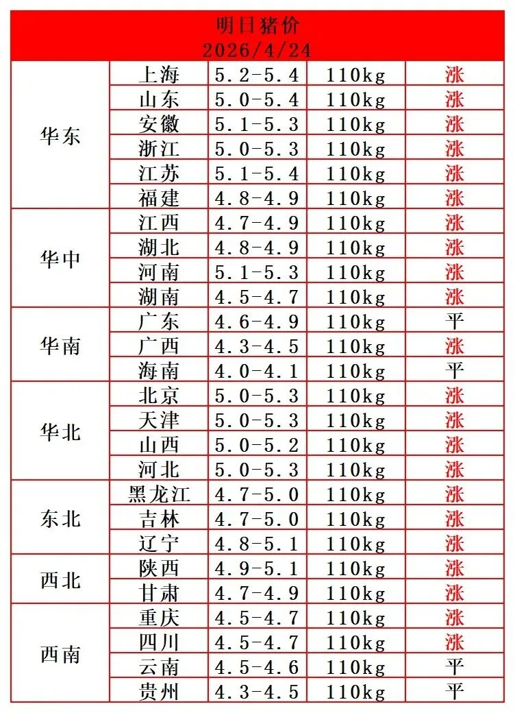 【明天】-2026年4月24日-全国猪价(强势反弹,猪价又要上涨)