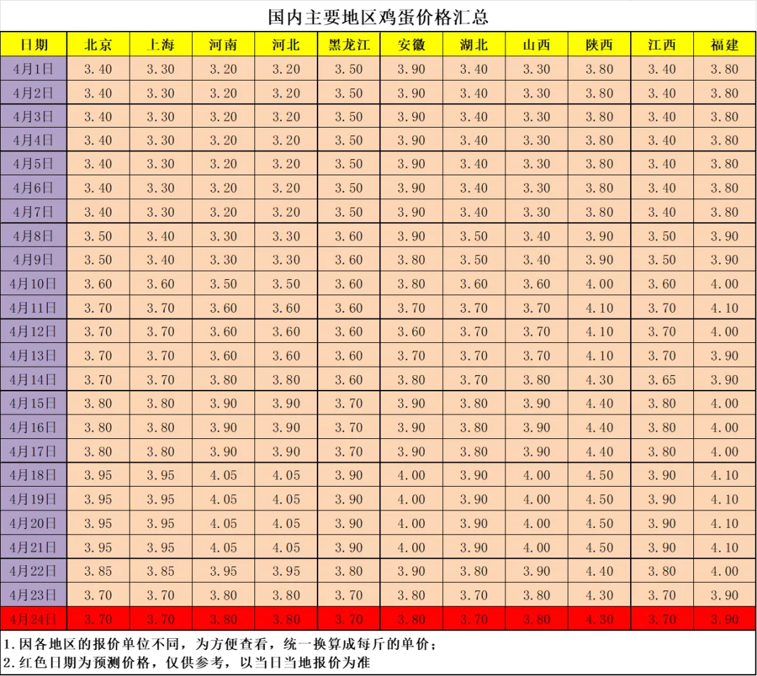 ? ? 鸡蛋预测价格仅供参考,实际价格以当地当日的报价为准。