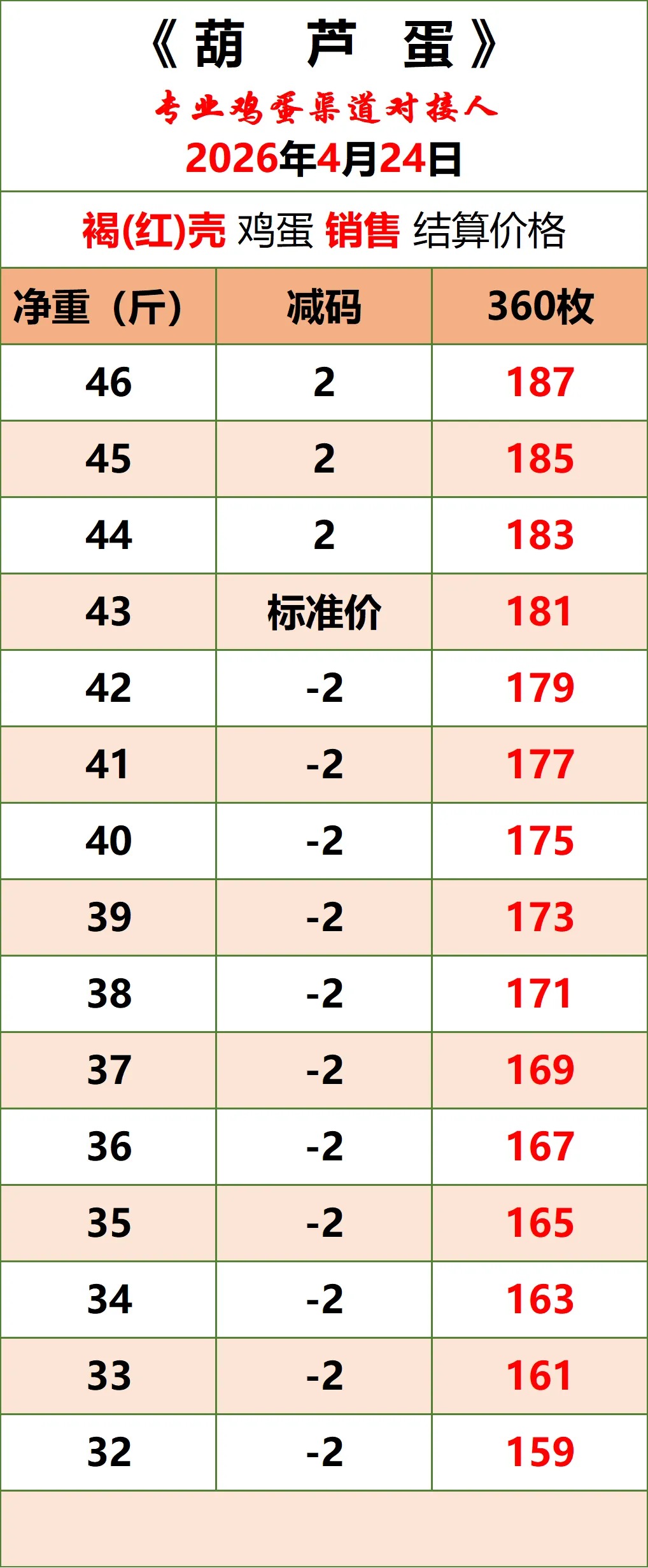 2026年4月24日《葫芦蛋》鸡蛋价格