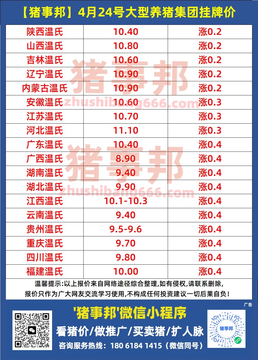 温馨提示:以上报价为当晚信息汇总的大致价格,具体价格请关注“猪事邦”微信小程序,信息只作为广大猪友交流学习使用,不构成任何投资建议一切后果自负。