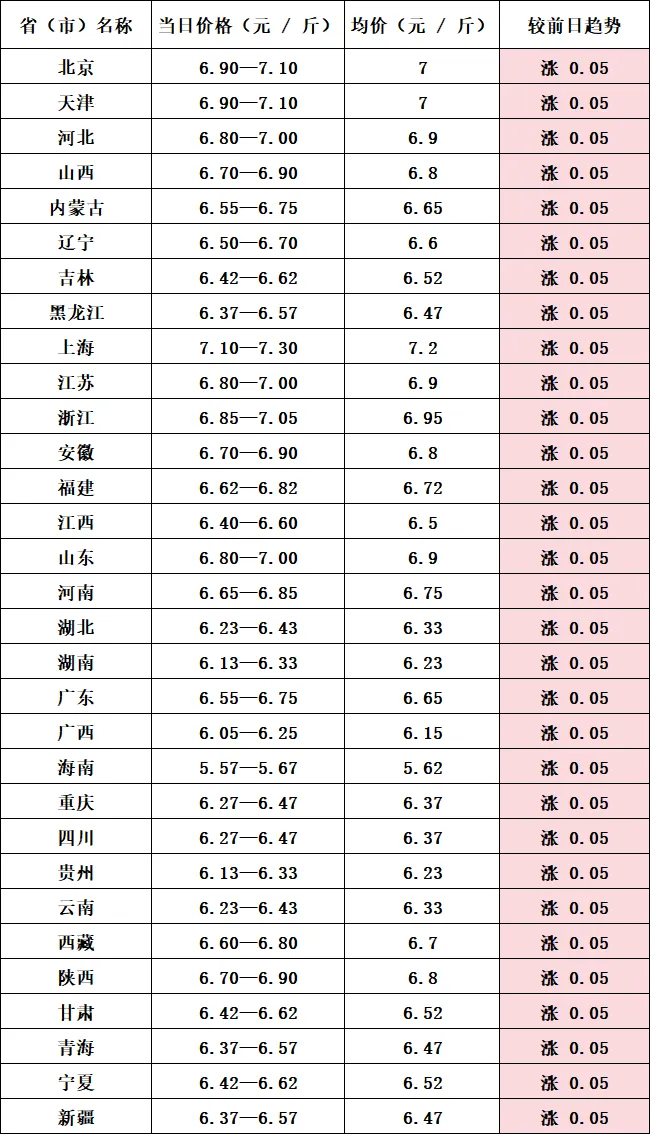 全国各省(市)今日猪价毛猪生猪交易价格行情表