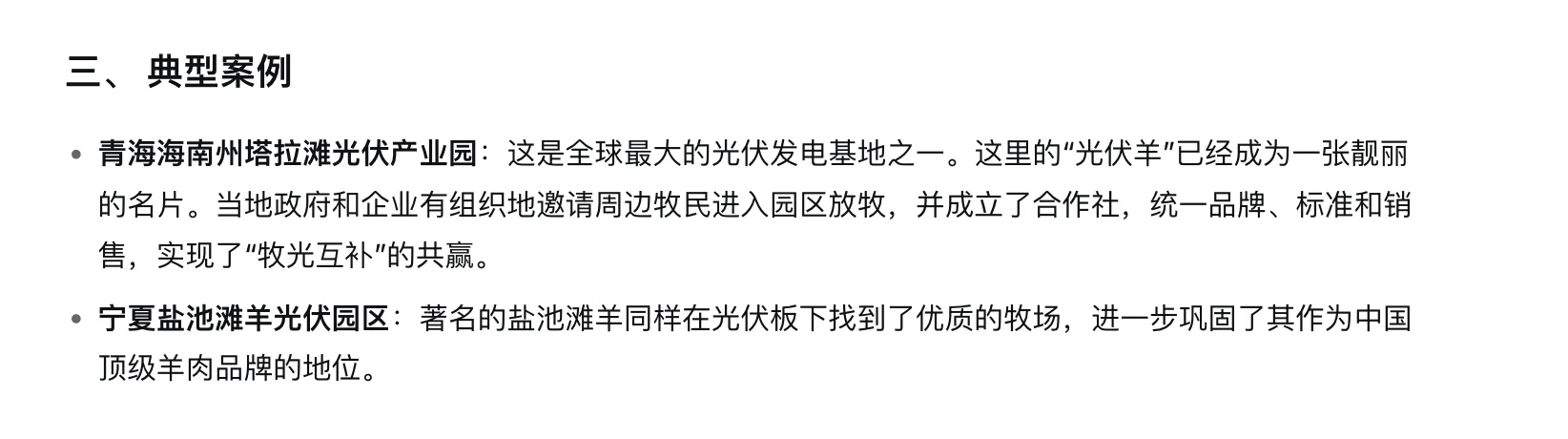 光伏羊 养羊网 2025-10-20 光伏羊 ?神奇连锁反应?1?? 大片光伏板一盖,就像给戈壁滩打了把伞??2?? 地上水分不蒸发,小草蹭蹭长?,荒漠变草原!3?? 羊咩咩们开心坏了!夏天在板子下乘凉,饿了就吃天然牧草??为啥这羊肉出名了?? 纯天然散养:天天溜达,肌肉紧实? 吃百草长大:草里还混着中草药,肉质鲜美没膻味!? 环境无污染:光伏基地空气水源都超干净~真正实现了“上面发电,下面烤肉”?#养羊 #地球村食评人大赛 养羊网 2025-10-20 上一篇:有没有吃牛羊肉的友友们或者种花种蔬菜的 下一篇:为什么羊没能成为人类的宠物 您可能还会对下面的文章感兴趣111: 相关文章 2月10日最新小麦玉米价格 最高級別的西班牙火腿 2025年4月13日全国各地生猪价格信息 「猪茅」史无前例的一次分红