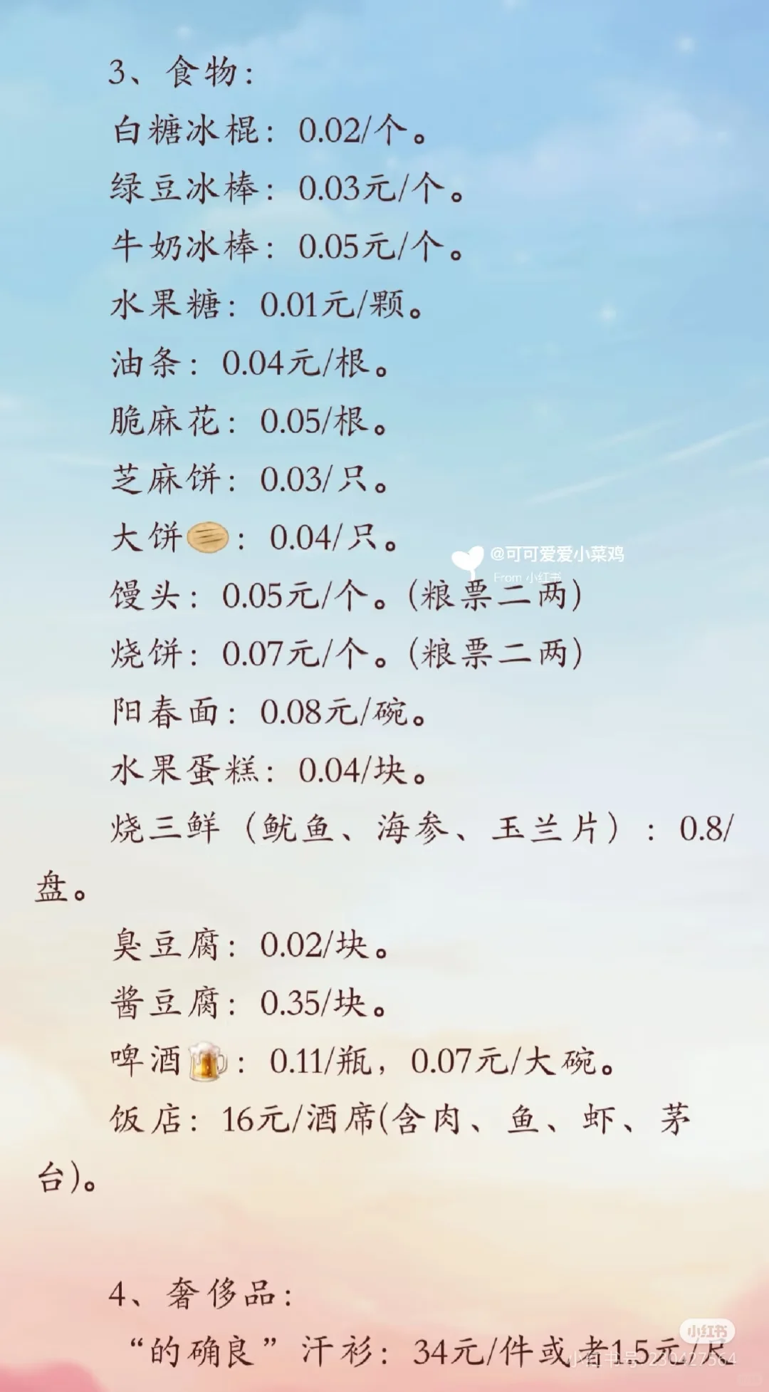七零八零年代物价 养羊网 2025-11-16 七零八零年代物价 年代文参考 养羊网 2025-11-16 上一篇:这个月的存钱真的有成效了~~~ 下一篇:上周平均成交价格出炉 您可能还会对下面的文章感兴趣111: 相关文章 山东寿光河南信阳山西长治蔬菜最新价格表 近期价格更新!!! 周六鲜肉特价,还有更多特价点进来看正文? 农场终于布置好了!