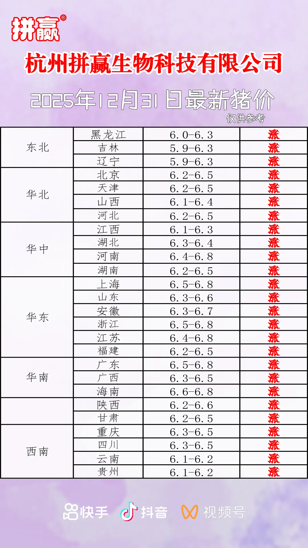 【今日猪价】2025.12.31全国猪价参考