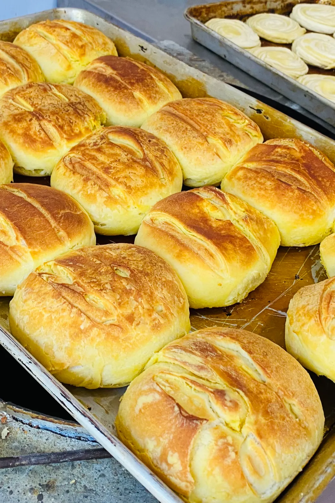 对于呼和浩特人来说,烧麦也许过于“硬核”,焙子算是呼和浩特早餐中最混搭的一种早点了,别名就叫“万能夹”。土炉中蹦出来的焙子阵容豪华,咸的甜的,方的圆的,千层的油酥的,衍生了形形色色的搭配方式。