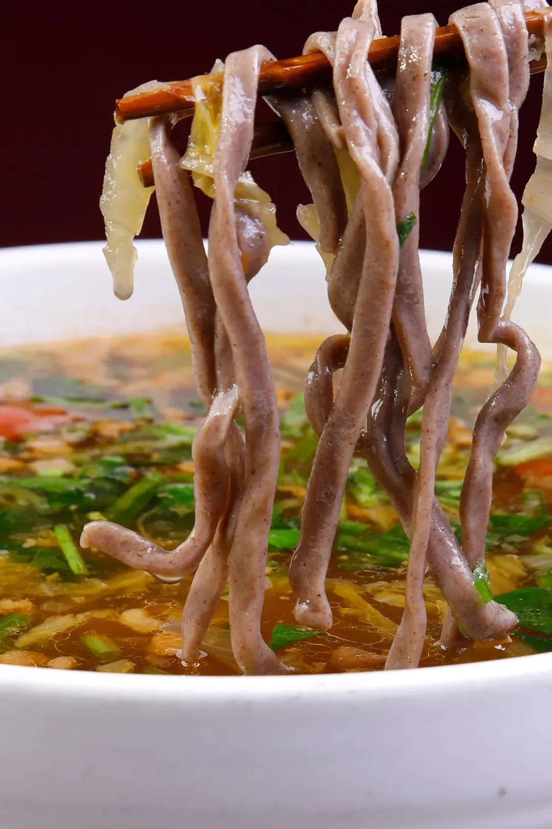 因为坐拥莜面物产,包头同样发展出了吃莜面栲栳栳的习惯,还细心地搭土豆汤与酸辣蘸水。要是变点花样也不在话下,搓鱼鱼、推窝窝、卷囤囤、搅拿糕,还能就着羊头汤、盐菜汤吃,吃出了各种花样。