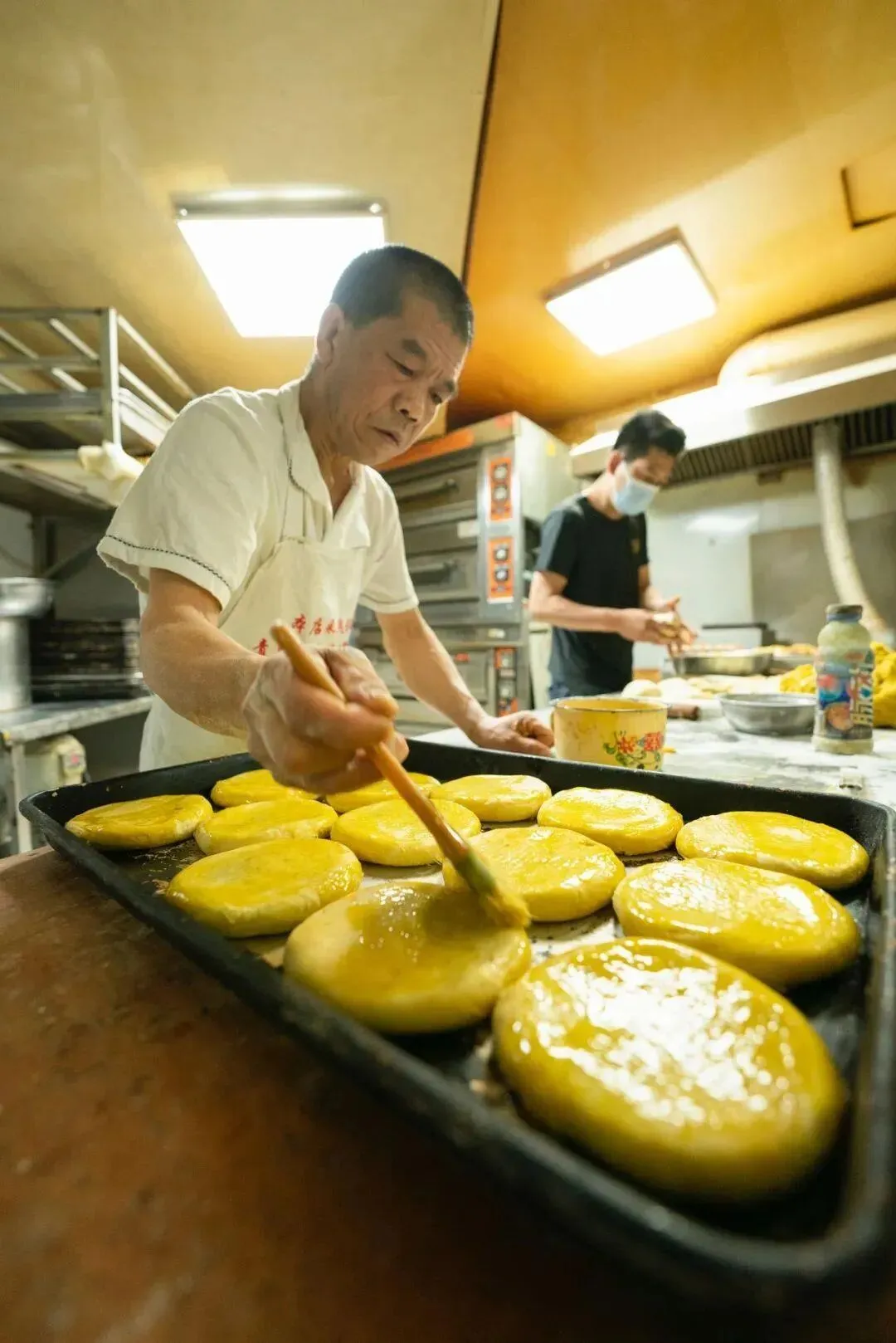 基本款白焙子,常见吃法是泡着吃,掰成小块堆在杂碎的碗中,体会焙子吸饱热辣汤汁的味道。夹法就更多,焙子夹烧麦,这叫做“面面俱到”;夹咸菜,这叫“返璞归真”;有人专门爱夹重口的食物,比如炸串、辣条,于是就有了“辣焙子”的说法;关于焙子的夹法还有不少极限实验,八个烧卖、十串羊肉串、甚至奶油雪糕,谁发明的菜谱不具名,绝对集体创作的现象级早点。至于豆沙焙子、红糖焙子,选择走清新甜食路线。