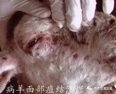 1、病羊面部痘结溃烂