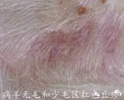 3、病羊无毛和少毛区红色丘疹
