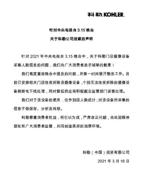 多个应用商店下架UC浏览器 央视3·15晚会曝光“UC浏览器搜索存在医药广告造假”一事,广州市市场监督管理局连夜开展核查处置。 记者在UC浏览器上搜索“减肥”“降血糖”等关键词发现,前几条搜索结果均为网友分享治好疾病经历,下方标注着广告字样。点进广告后会看到标题为《我9年的高血糖终于恢复正常了,真实经历分享》的文章。文中网友自称在9年里饱受高血糖折磨,自从认识某老师,按照老师给的方子服用后,血糖恢复稳定,胰岛素都停用了。 在前述自述文章中,网友不断地推荐这位老师,并且多次醒目地标红了老师的微信号。在添加微信、简单询问过病情后,这位老师便向记者推荐了“白背三七诺丽果粉”,并称连续服用四个月左右,就可以停针停药、稳定血糖。央视报道称,实际上,这只是一款普通食品。 3月15日晚间,UC浏览器针对虚假医药广告发布回应,为违规广告带来的不良影响向公众致歉,第一时间排查下架违规广告内容,并迅速成立全网排查专项团队,加强对广告投放的事前审核和事中巡查。 广州市市场监管局方面介绍,UC浏览器属阿里巴巴控股的公司。经现场询问调查,该公司相关当事人承认其存在发布虚假违法广告的违法行为。 经初步核查,目前该公司有广告代理公司34家,“3·15”晚会曝光的虚假违法广告为上海亦盛文化传媒有限公司代理。 经过检索发现,目前在vivo、OPPO等应用市场UC浏览器和360搜索已被下架;而在小米应用市场,UC浏览器已经搜不到,但360搜索依然可以正常下载。 科勒卫浴收集人脸数据: 在消费者不知情的情况下收集人脸信息 央视3·15晚会曝光了科勒(中国)投资有限公司在旗下卫浴门店安装人脸识别摄像头,存在收集人脸数据的问题。 科勒卫浴全国性门店均装有人脸识别摄像头,在不知情的情况下,精准抓取消费者人脸信息。使用人脸识别营销,用于对于潜在消费者报价统一。 据央视315晚会披露,所涉收集人脸数据的摄像头系统生产商“万店掌”介绍,能通过人脸识别信息解决精准营销,抓取的人脸数据信息累计上亿。 另一监控系统生产商“悠洛客”科技也同样有此技术,均可以在顾客不知情、没有感知的情况下抓取信息,还可以手动添加各种标签,如职业打假人、记者。 此外,无锡一家宝马4S店、MaxMara旗下一家店铺均存在安装人脸识别摄像头,收集人脸信息等问题。 3月16日,科勒(中国)投资有限公司发布致歉声明,表示已安排相关门店连夜拆除摄像设备。