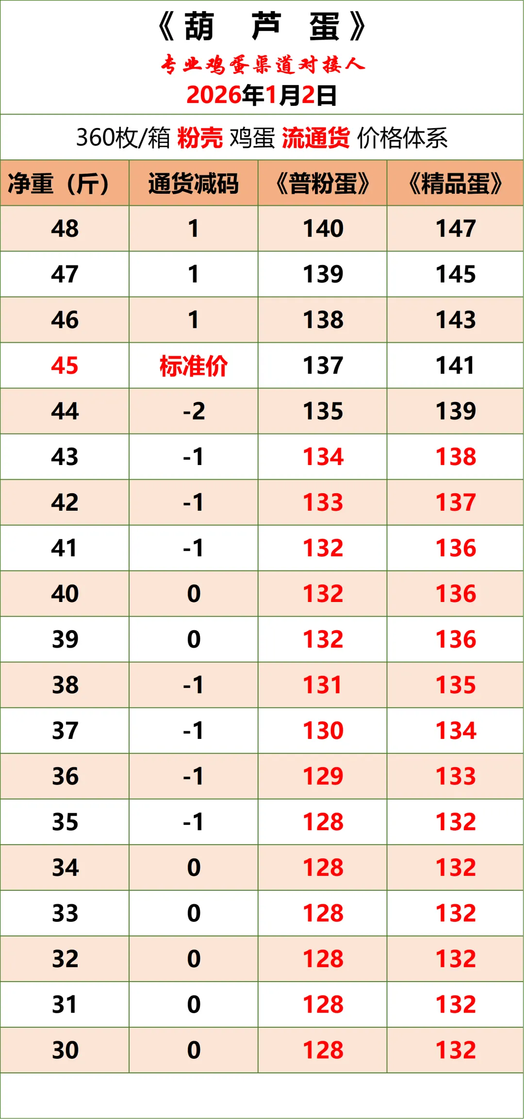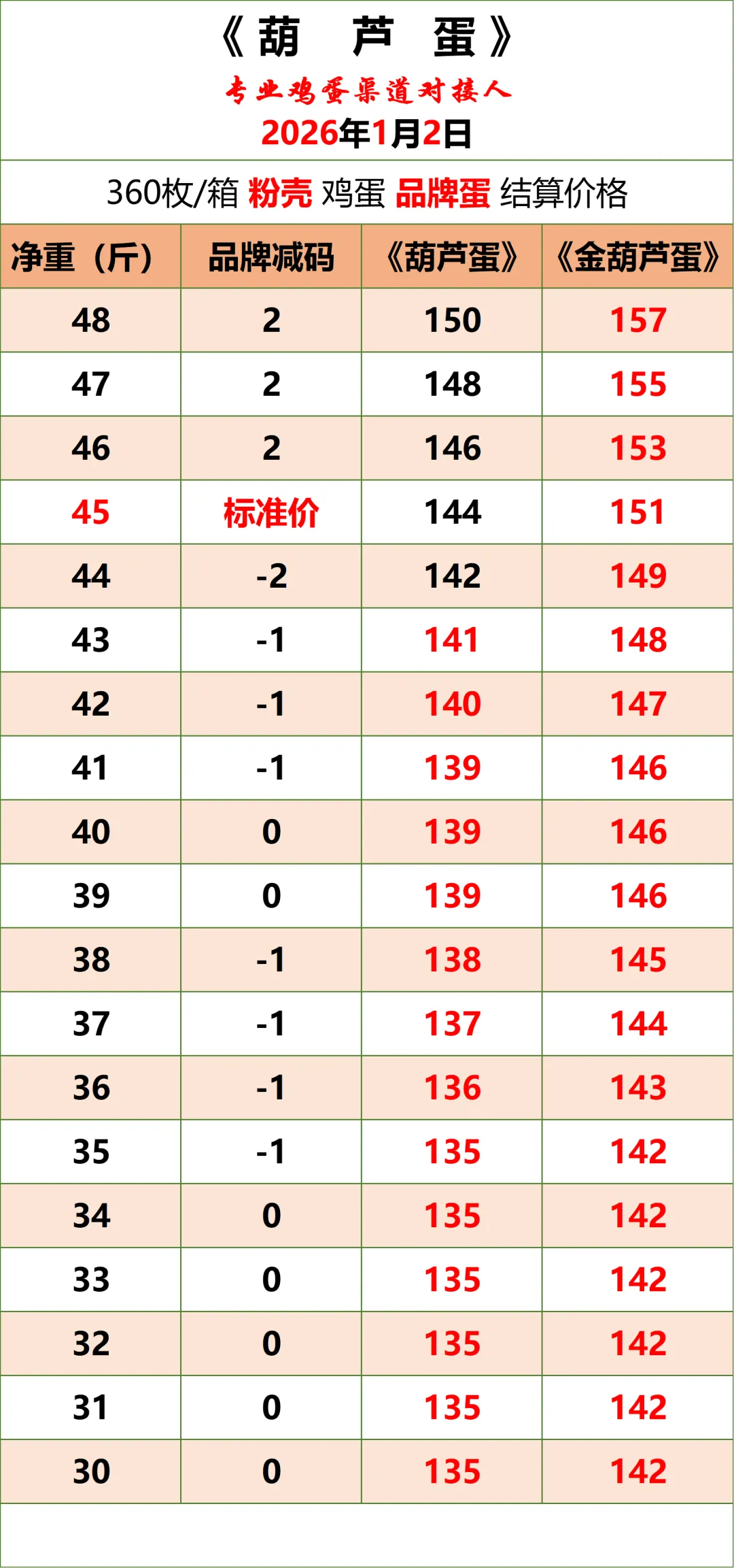 2026年1月2日《葫芦蛋》鸡蛋价格
