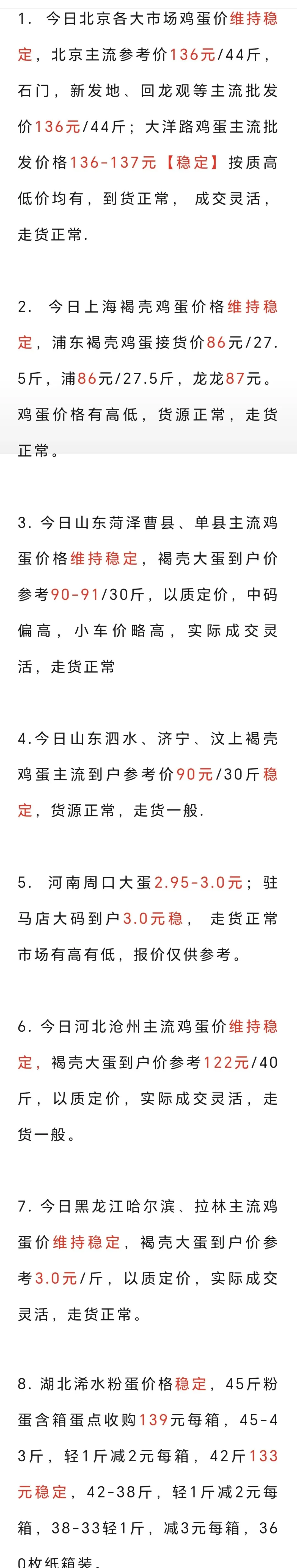 二0二六年元月2日各地鸡蛋价格 养羊网 2026-01-02 二0二六年元月2日各地鸡蛋价格 养羊网 2026-01-02 上一篇:【猪价早报】2026. 1 . 3 突然变脸!猪价开始猛跌! 下一篇:2026年1月2日鸡蛋价格【每日五次更新】---蛋价持续更新中 您可能还会对下面的文章感兴趣111: 相关文章 金华两头乌,20一斤,可自提可货拉拉 60?| 运费差点把我吓退了,收到后太值了! 2025年4月13日全国各地生猪价格信息 北京上门宰杀活羊
