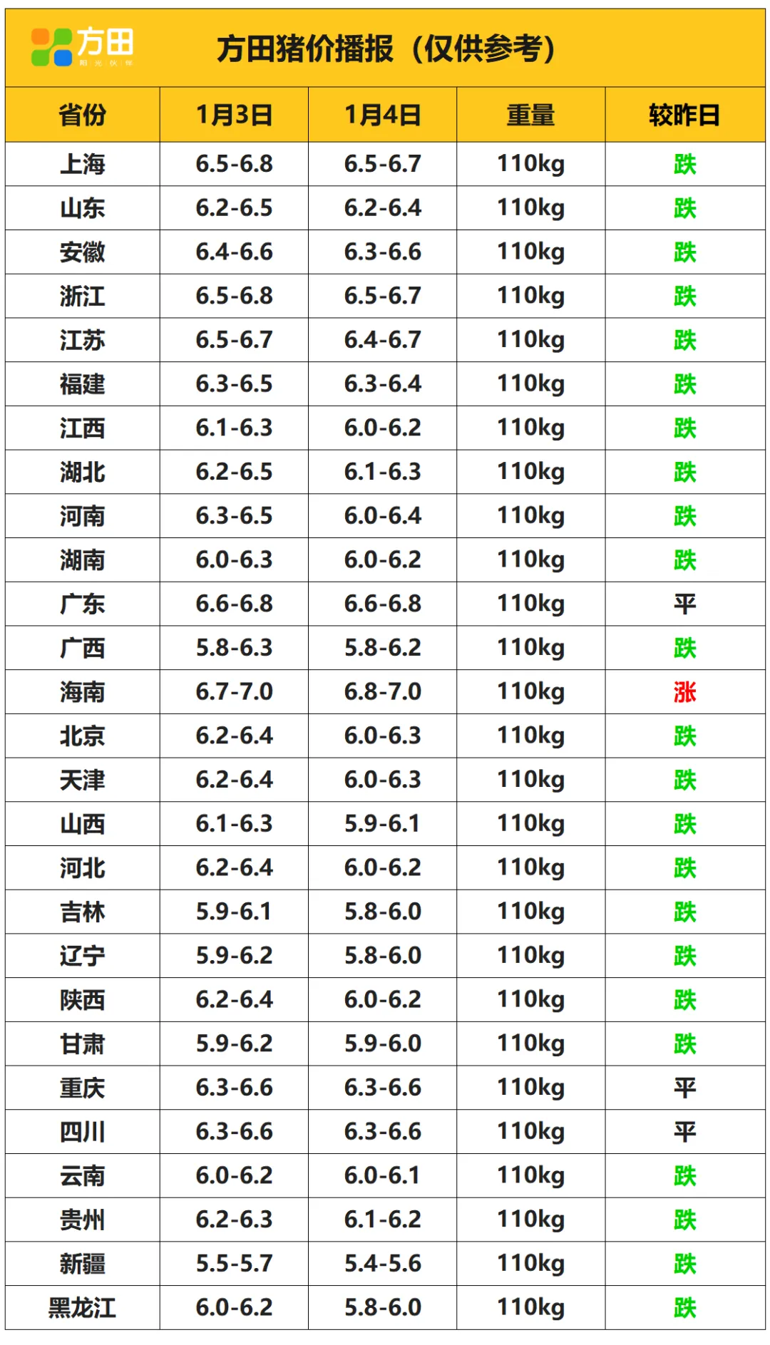 猪价丨1月4日 明日猪价早知道 养羊网 2026-01-04 猪价丨1月4日 明日猪价早知道 养羊网 2026-01-04 上一篇:1月3日各地鸡蛋价格详情 下一篇:2026年1月4日 鸡蛋价格 您可能还会对下面的文章感兴趣111: 相关文章 新手养宠价格指南 北京种菜一年1.8亿,姐姐农村种菜月入1个? 第一次买羊腿 在塔县托格伦夏村,看一场叼羊游戏