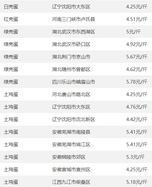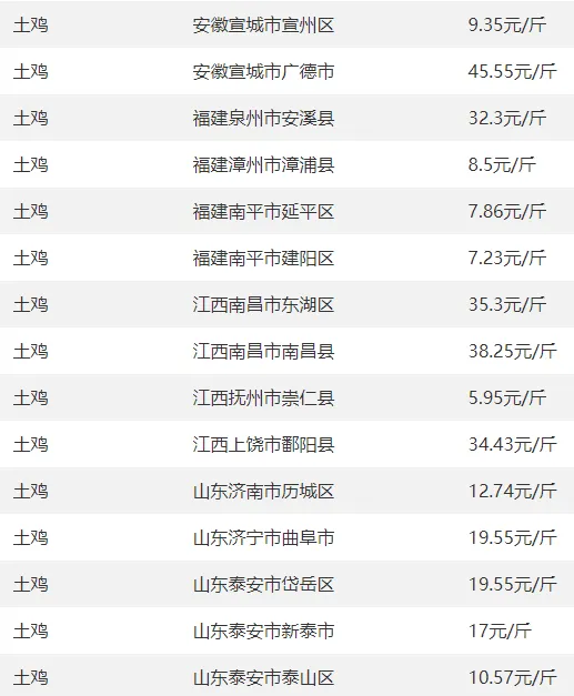 肉鸡、土鸡、鸡苗、鸡蛋等今日报价