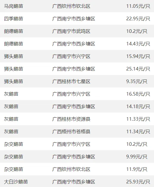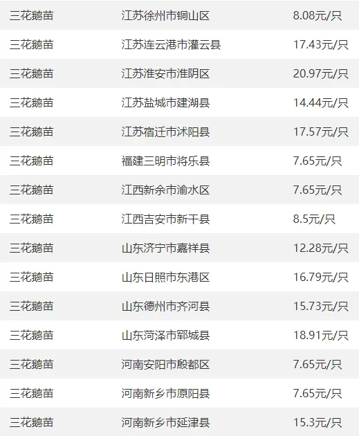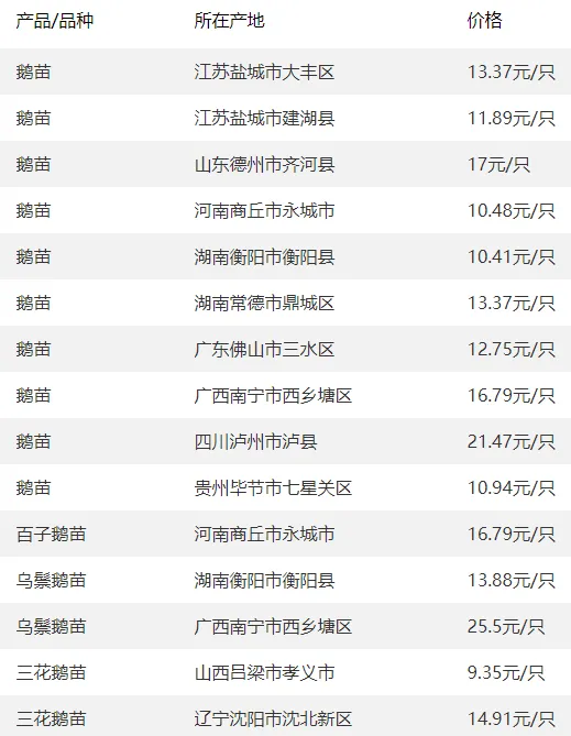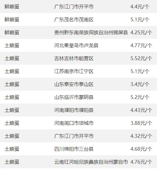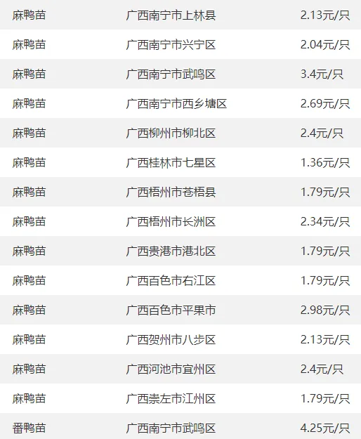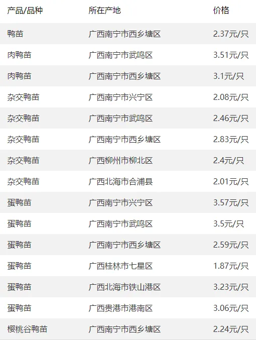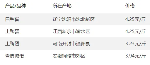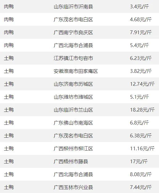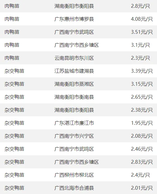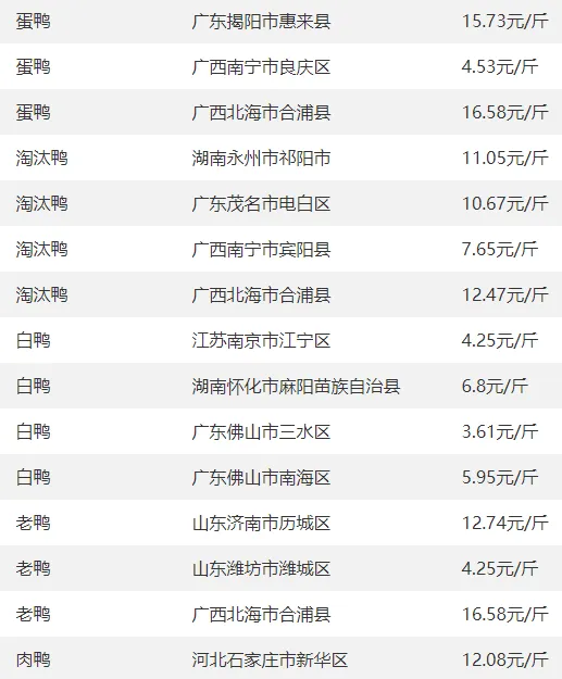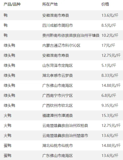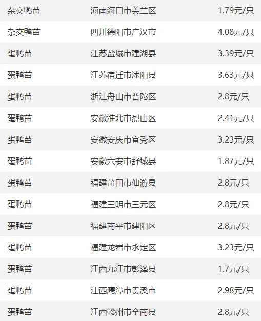 活鸭、鸭苗、鸭蛋、鹅苗等今日报价参考