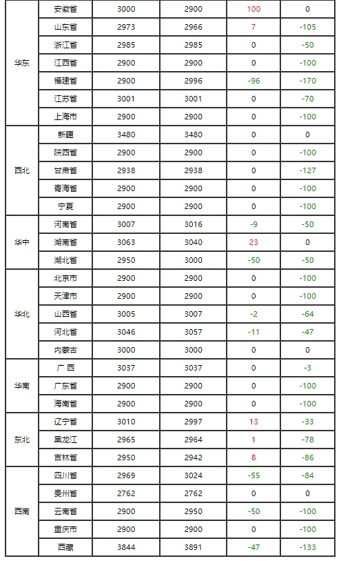 沿海主要油厂报价集中在 2960-3040元/吨,较节前下跌10-30元不等: