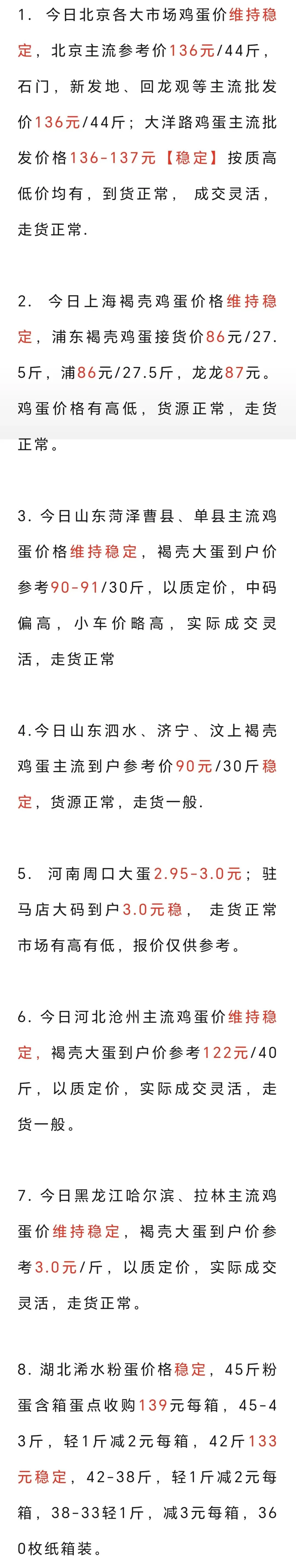 二0二六年元月3日各地鸡蛋价格 养羊网 2026-01-04 二0二六年元月3日各地鸡蛋价格 养羊网 2026-01-04 上一篇:明日(1月4日)鸡蛋价格预测 下一篇:大洋路鸡蛋价格2026年 1 月 3 日报价 您可能还会对下面的文章感兴趣111: 相关文章 2025年4月13日全国各地生猪价格信息 Egg prices in NC, USA 漳厦泉黄金回购价涨2025/11/29号凌晨00:52 上海这物价你们觉得如何
