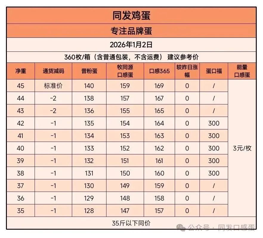 2026年1月3日鸡蛋价格最新报价表点击上方「蓝字」关注我们 同发鸡蛋2026年1月2日价格