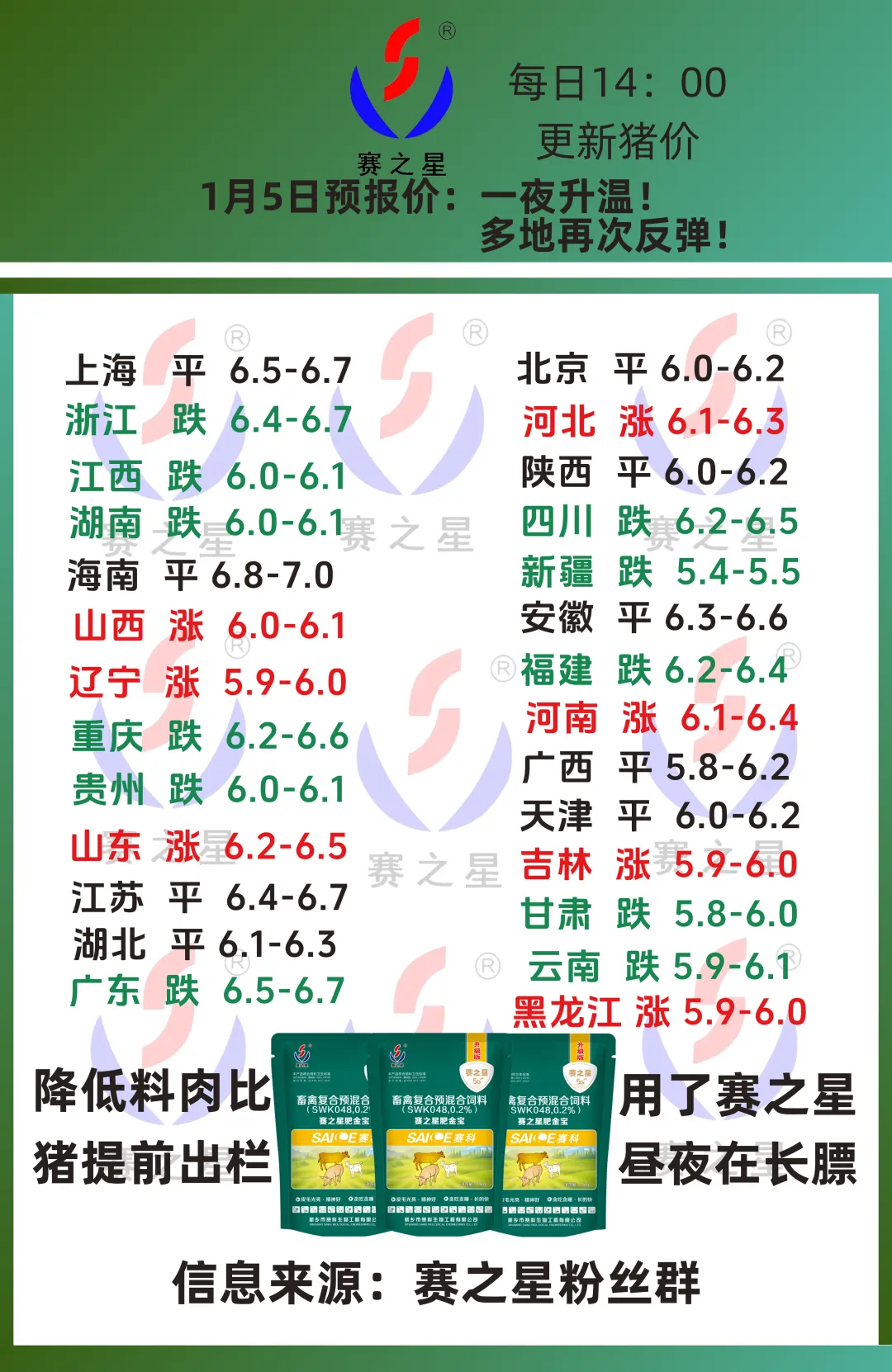【猪价早讯】 2026. 1.5猪价!多地上涨!!(欢迎转发)