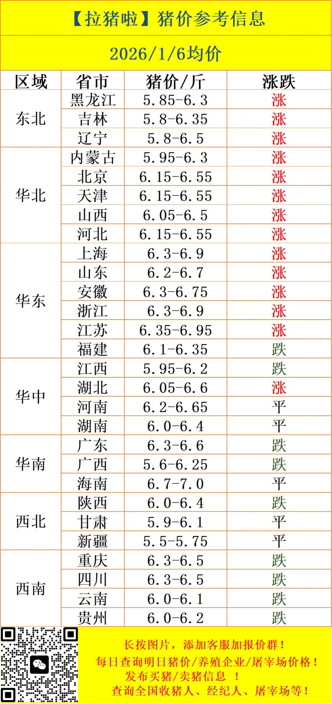【拉猪啦】1.6-猪价行情与买卖猪信息!(北方、中东部上涨!)