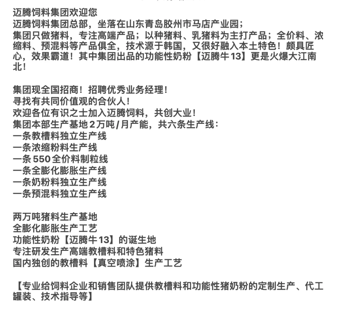 小编不需要大家打赏,只希望您在文末点个“在看”,把好文章推荐给朋友,让更多人一起关注“青岛迈腾饲料有限公司”,谢谢啦