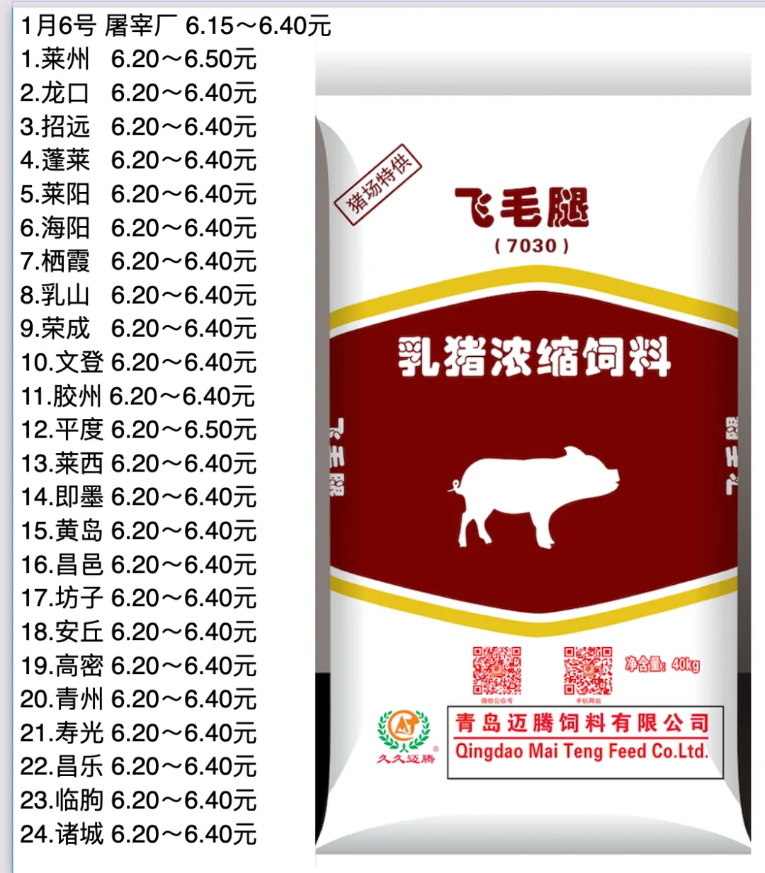 【迈腾猪价】每日行情