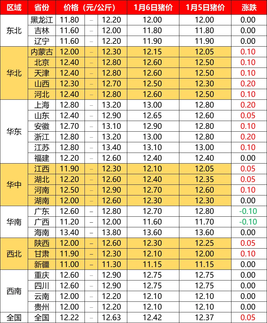 1月6日全国猪价小幅上涨【动力猪价】