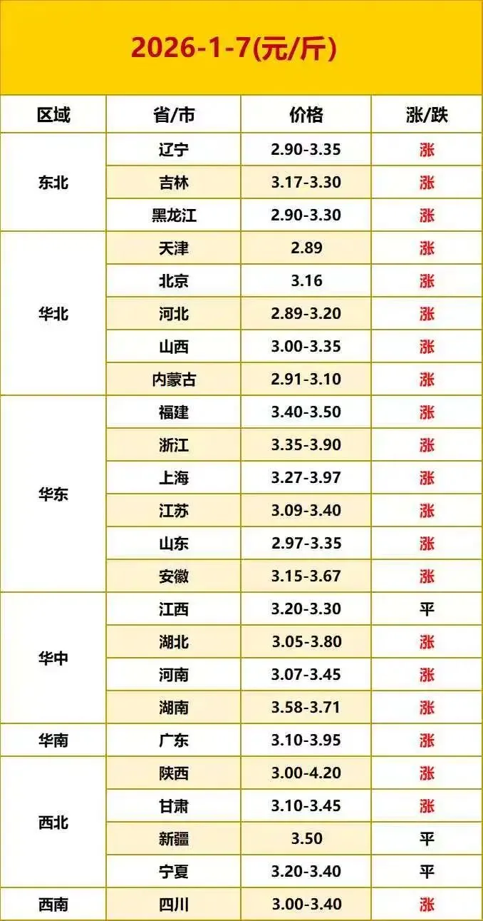 【鸡蛋价格】2026年1月7日明日蛋价