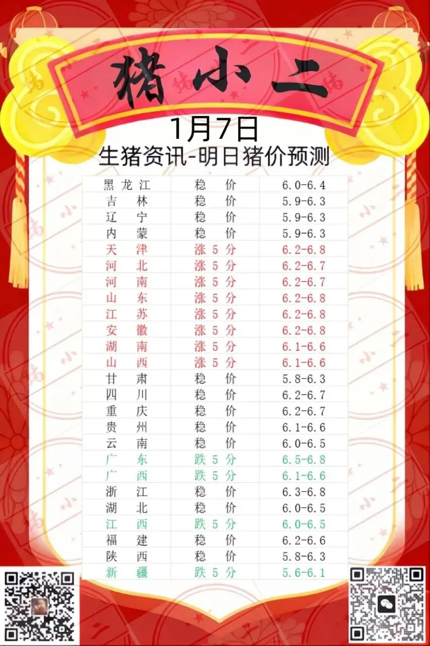【猪小二】1.7日全国猪价预测:稳定为主 养羊网 2026-01-06 【猪小二】1.7日全国猪价预测:稳定为主 养羊网 2026-01-06 上一篇:猪价继续涨!明日全国生猪行情! 下一篇:每日猪价 2025年12月7日 您可能还会对下面的文章感兴趣111: 相关文章 江西万载县种植百合5000多亩成农民致富好项目 看看有没有你家乡的羊肉! 2025年4月13日全国各地生猪价格信息 2025年4月13日全国各地生猪价格信息