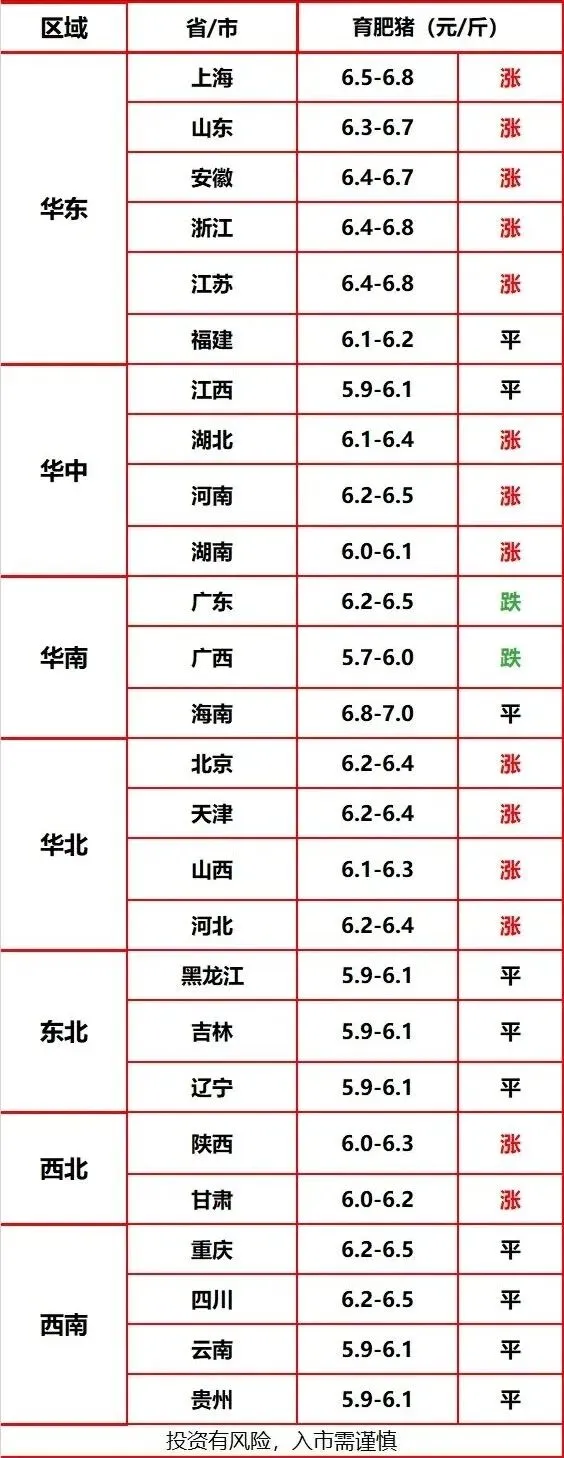 【今日猪价】1月7日 全国猪价 多地上涨 养羊网 2026-01-07 【今日猪价】1月7日 全国猪价 多地上涨 养羊网 2026-01-07 上一篇:元月06号鸡蛋价格最新蛋价 下一篇:2026.1.7鸡蛋价格最新报价行情 您可能还会对下面的文章感兴趣111: 相关文章 近期价格更新!!! 近期价格更新!!! 一片绿!7月11日全国早间猪价全面下跌! 那拉提羊肉