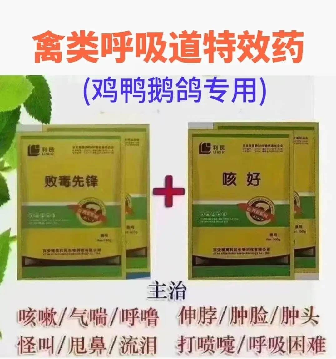 1、鸡?张口呼吸,呼噜、甩鼻、咳嗽,眼睛冒沫,感冒流鼻涕,流泪,伸颈,肿脸肿头等病毒性引起的呼吸道疾病有特效;