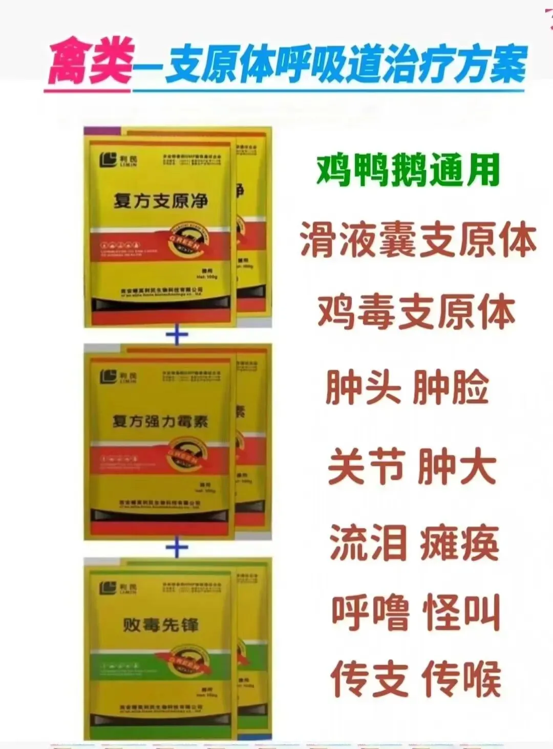 主治:鸡鸭鹅 肿头,肿脸,流泪,眼睛有泡沫,液体,关节肿大,支原体感染,滑液囊支原体,治愈率达95%