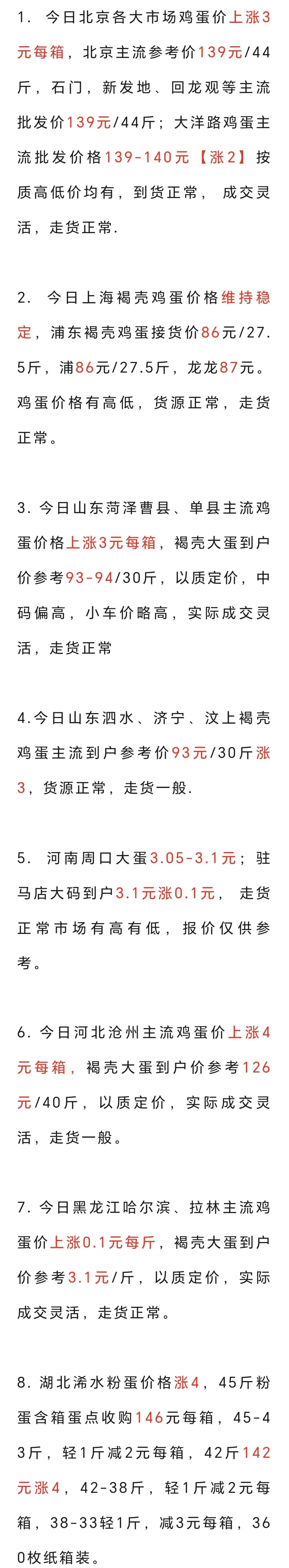 元月7日各地鸡蛋价格(普涨) 养羊网 2026-01-07 元月7日各地鸡蛋价格(普涨) 养羊网 2026-01-07 上一篇:1月7日猪价 | 北方连涨,想出猪的抓住高点出栏! 下一篇:2026.1.08明天猪价(附:广东温氏最新生猪报价) 您可能还会对下面的文章感兴趣111: 相关文章 2025年4月13日全国各地生猪价格信息 不是吧! 悉尼现在的鸡蛋这么划算了? 2025年4月13日全国各地生猪价格信息 成都动车出发两小时|我去松潘买了个牛肉