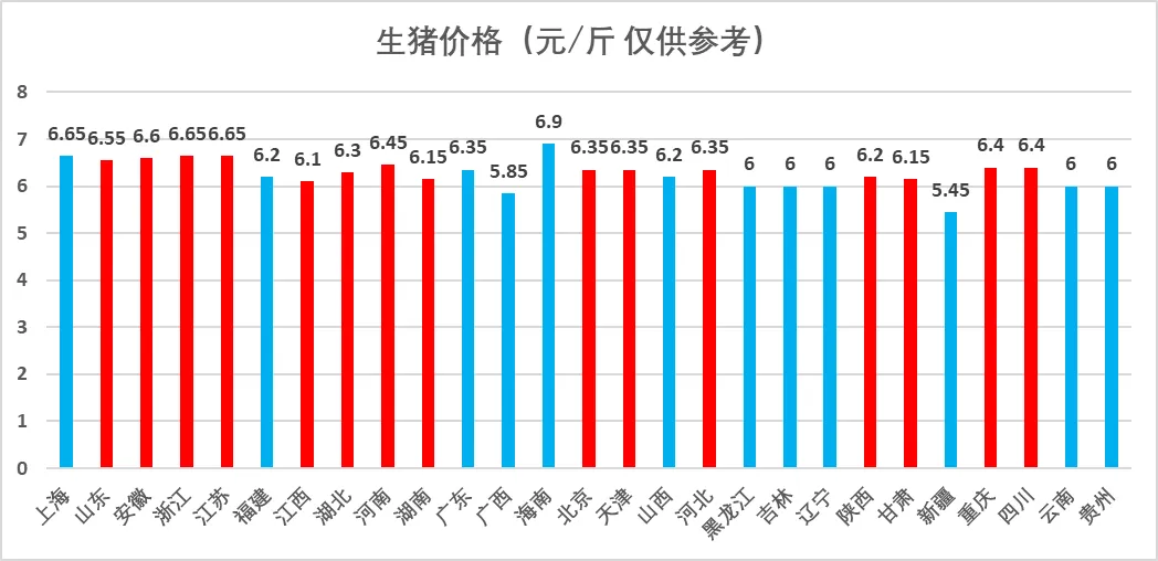 华东 | 上海 | 6.5~6.8 | 6.5~6.8 | 0 |