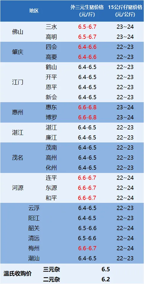 今日广东省外三元、15公斤仔猪价格