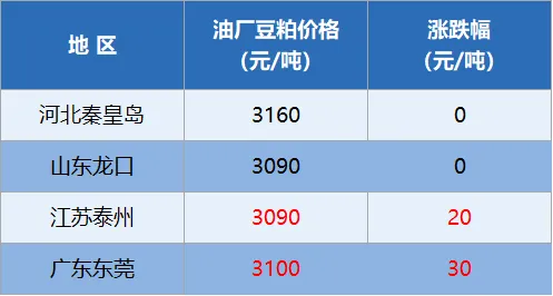 今日全国重要地区油厂豆粕(43%蛋白)价格