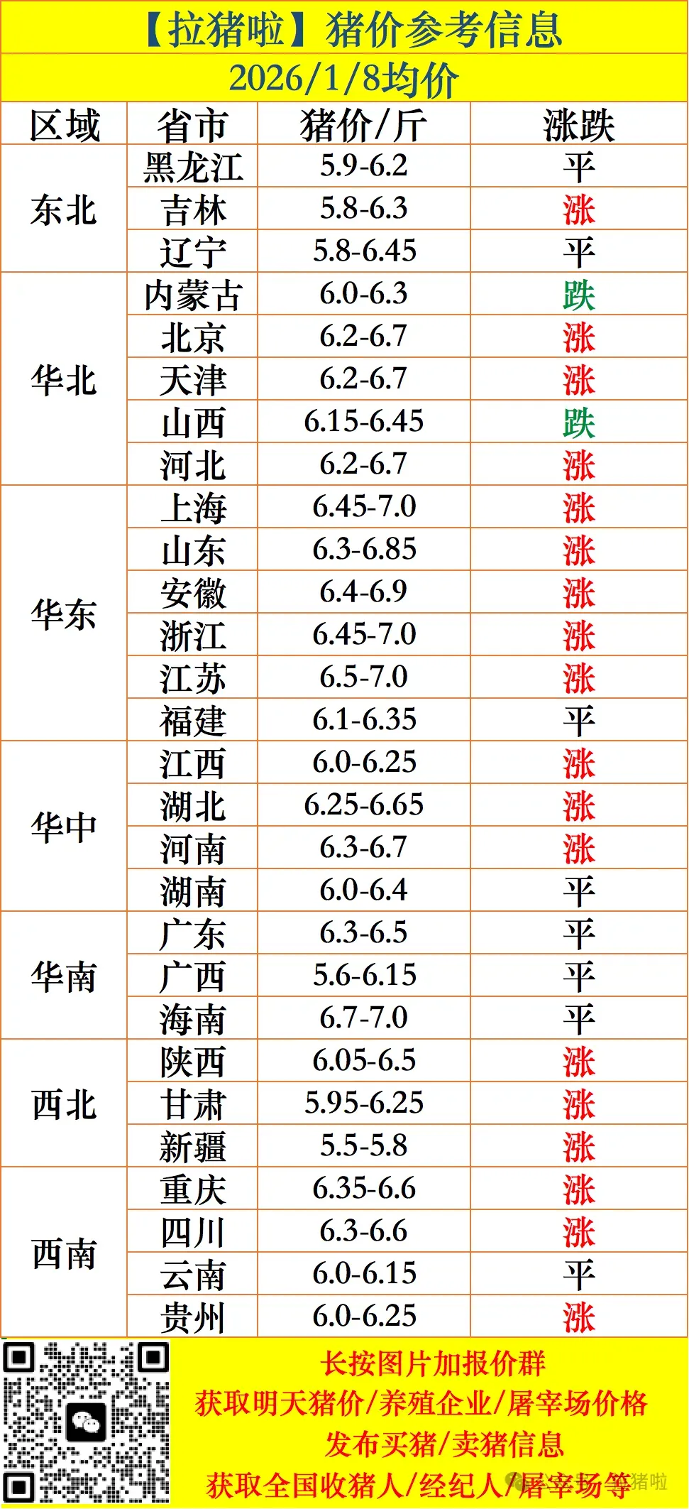 【拉猪啦】1.8-猪价行情与买卖猪信息!(中东部、南方偏强!)