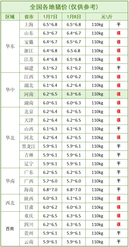 2026年1月8日的猪价相关情况