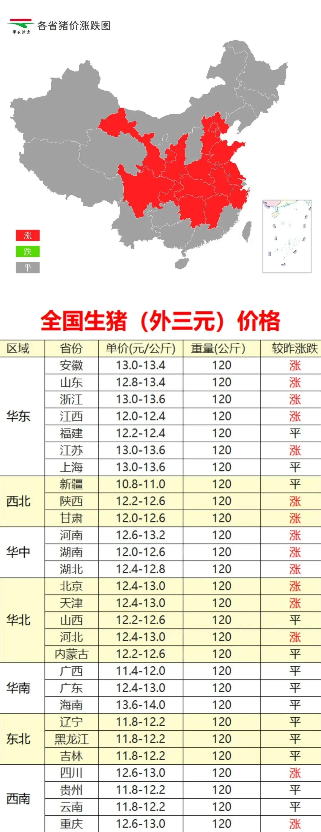2026/1/8全国猪价 养羊网 2026-01-08 2026/1/8全国猪价点击上方蓝字关注我们全国猪价(以上数据来源于网络,仅供参考)金杯银杯不如客户口碑好钢不怕火炼,好料不怕实验。华农恒青等你来验! 养羊网 2026-01-08 上一篇:云南鸡蛋价格参考:1月8日!涨! 下一篇:北方部分行情转强,元月中上旬猪价仍面临一定压力,下旬猪价或进入周期性上涨的阶段! 您可能还会对下面的文章感兴趣111: 相关文章 养鸡场鸡蛋,物美价廉 DAY7|女大挑战500活一个月! 2025年4月13日全国各地生猪价格信息 利润惊人的8个冷门行业