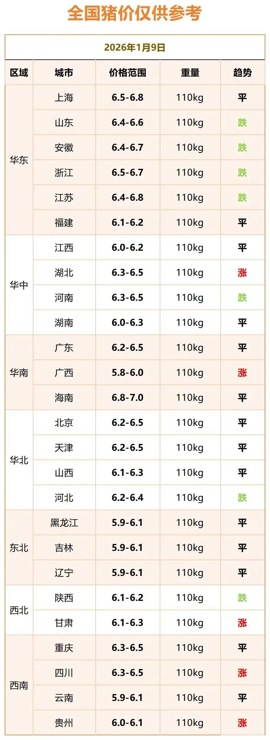 2026年1月9日全国猪价播报