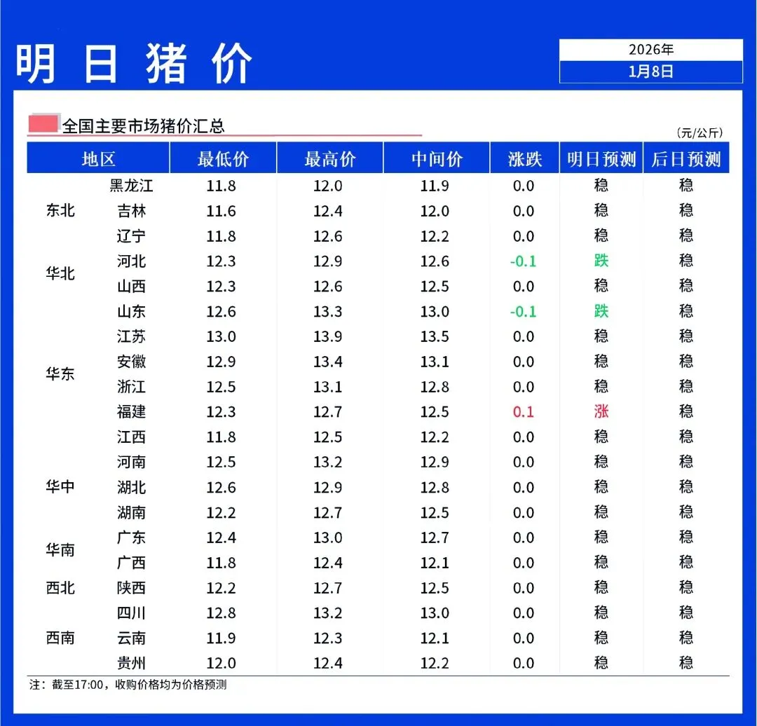 【明日猪价】1月9日全国猪价稳中震荡!