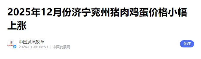 2025年12月份济宁兖州猪肉鸡蛋价格小幅上涨